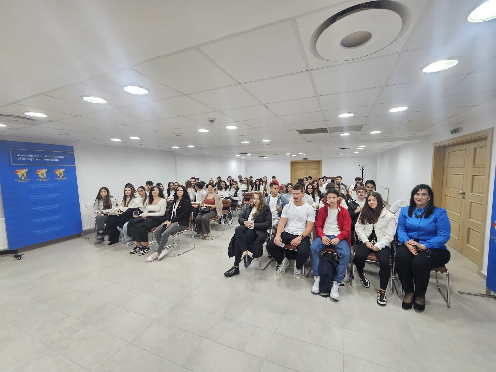 Astfel, toți participanții au beneficiat de un tur ghidat al Palatului de Justiție, inclusiv vizita unor săli de judecată, le-au fost prezentate aspecte generale referitoare la sistemul judiciar, într-o modalitate accesibilă, și li s-a răspuns tuturor întrebărilor, inclusiv celor amuzante (cum ar fi, de exemplu, de ce nu avem ciocănel sau dacă purtăm perucă 😊).